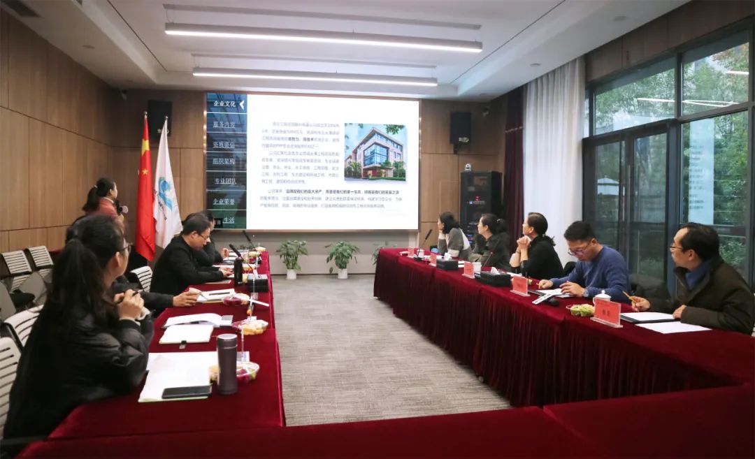 2020年11月24日上午,武漢市建筑業(yè)協(xié)會咨詢分會副會長鄧小琴、工會主席張紅艷、副秘書長陳詩夢、武漢市博奧建設(shè)工程造價咨詢有限公司副總經(jīng)理李炳兵、湖北省工業(yè)建筑集團有限公司設(shè)計咨詢分公司副總工程師張昊一行5人蒞臨鼎正公司交流座談,我司董事長王雁然、副總經(jīng)理姚建功及相關(guān)部門經(jīng)理出席會議。