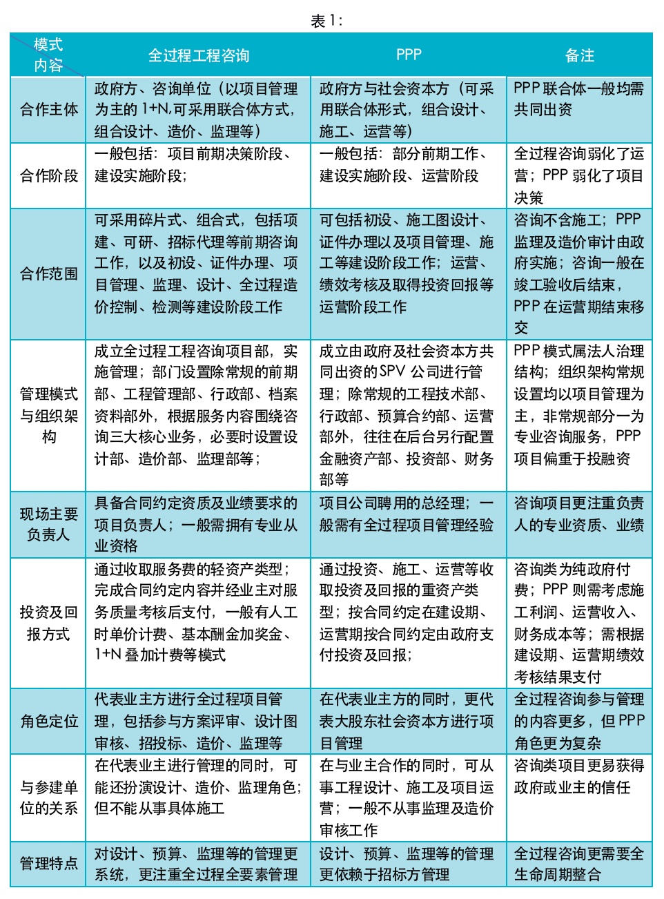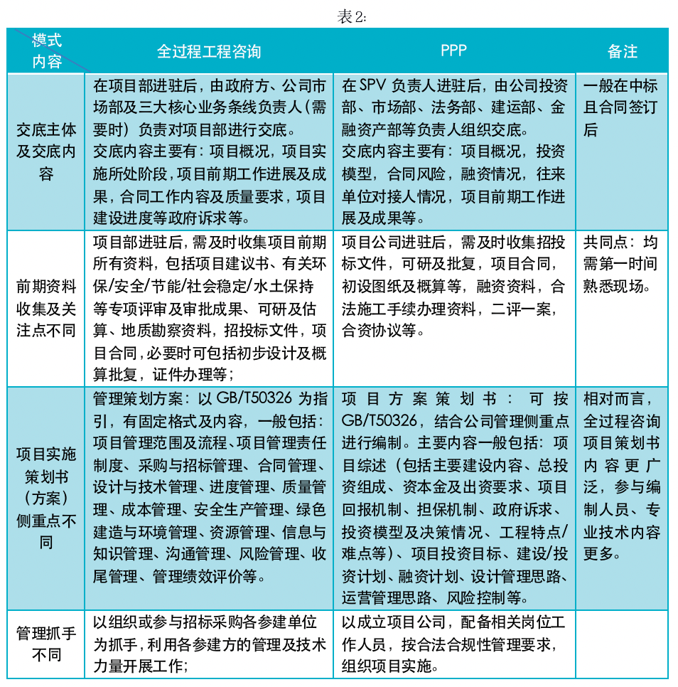 正如前面所述,因PPP項(xiàng)目管理為法人治理結(jié)構(gòu),項(xiàng)目公司管理中需同步考慮各股東方利益,而全過程咨詢項(xiàng)目部以業(yè)主利益至上為原則,因此建設(shè)期的管理差異還是較大的,主要表現(xiàn)在以下方面: