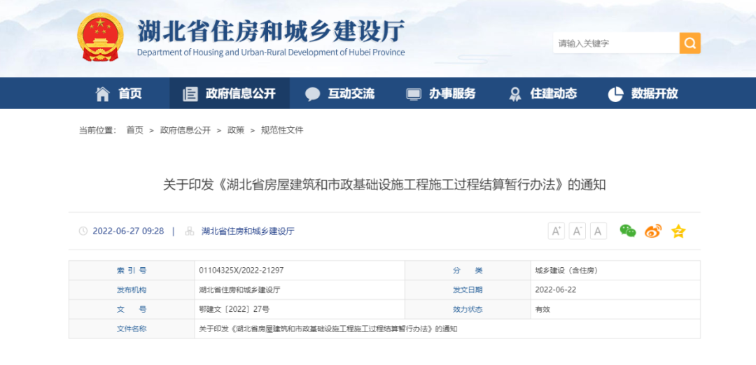 近日,湖北省住建廳聯(lián)合湖北省財政廳、湖北省公共資源交易監(jiān)督管理局印發(fā)了《湖北省房屋建筑和市政基礎(chǔ)設(shè)施工程施工過程結(jié)算暫行辦法》(以下簡稱《暫行辦法》),截至目前,全國已有近30省市區(qū)發(fā)文明確施工過程結(jié)算。