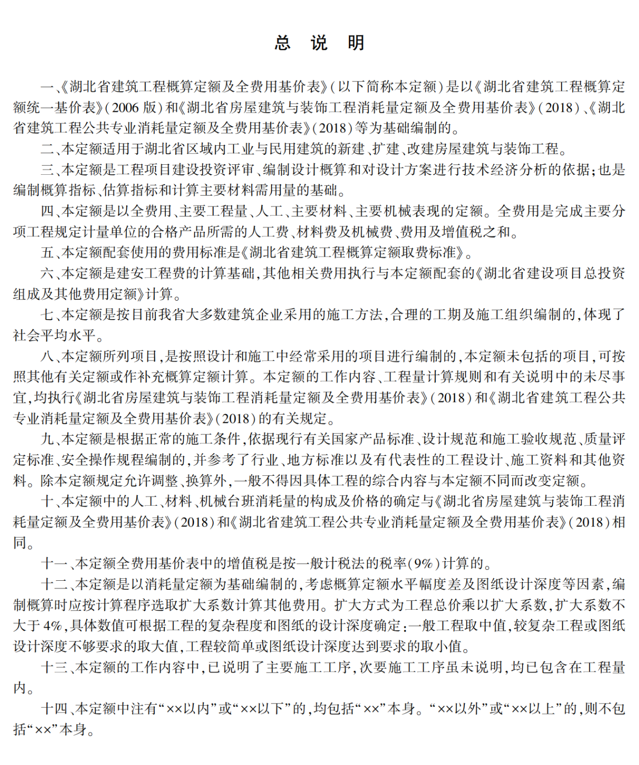 為進(jìn)一步完善我省計(jì)價(jià)依據(jù)體系,滿足工程項(xiàng)目投資估算、設(shè)計(jì)概算的編制需要,根據(jù)國家有關(guān)規(guī)范、標(biāo)準(zhǔn),結(jié)合我省實(shí)際,我廳組織編制了《湖北省建設(shè)工程概算定額及全費(fèi)用基價(jià)表》《湖北省建設(shè)項(xiàng)目總投資組成及其他費(fèi)用定額》(以下簡稱“本定額”),經(jīng)審定通過,現(xiàn)予發(fā)布,并就有關(guān)事項(xiàng)通知如下: