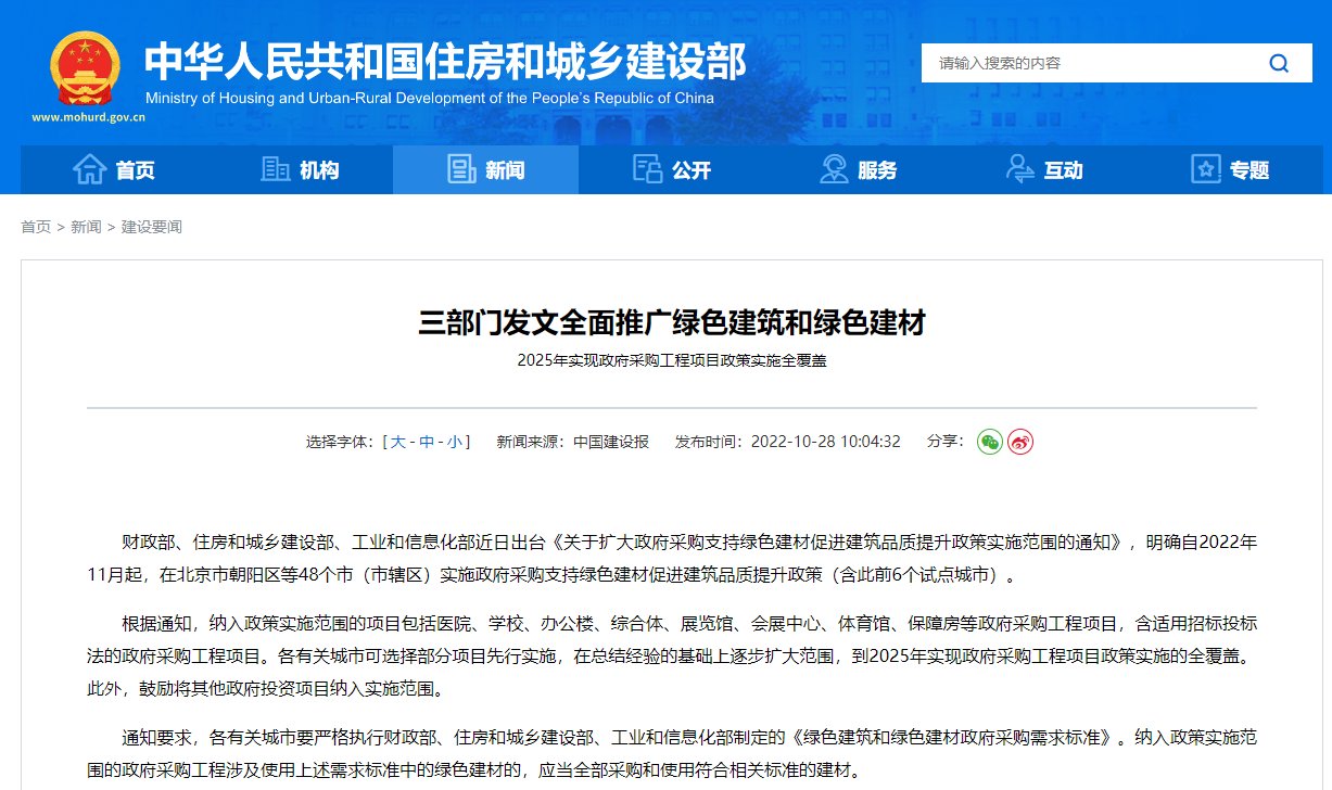 1.三部門發(fā)文全面推廣綠色建筑和綠色建材