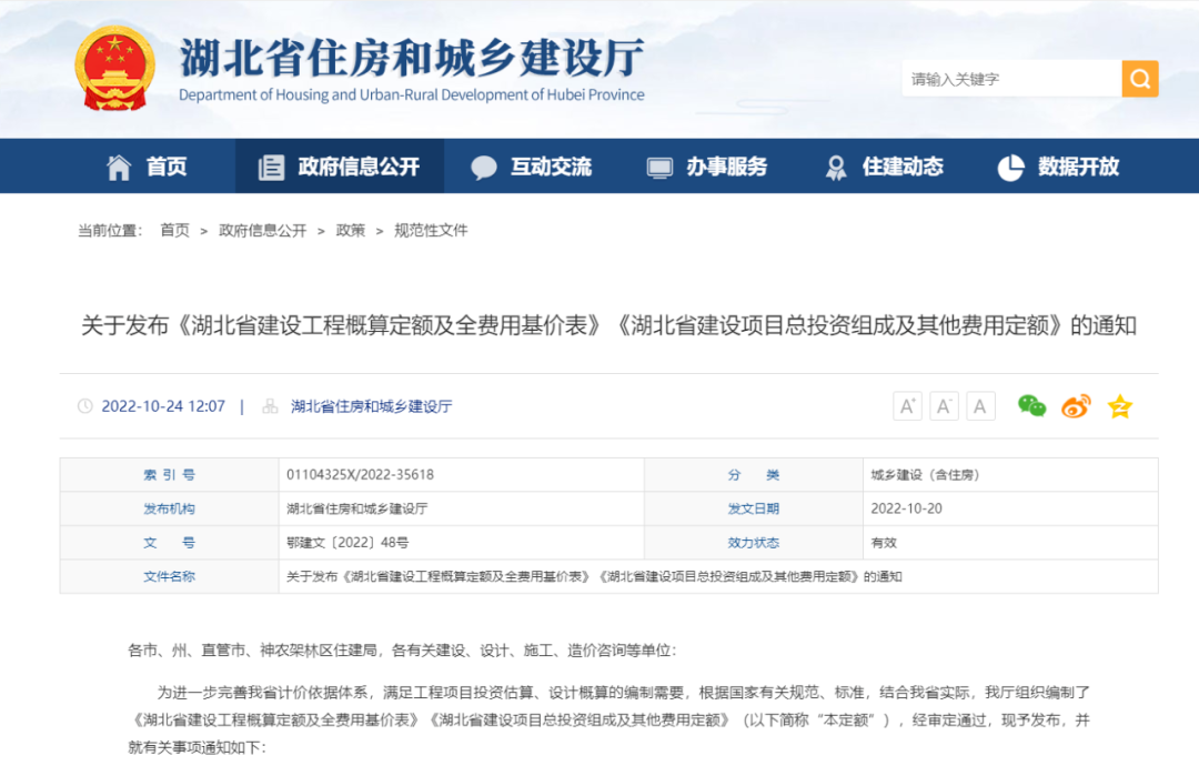 2.湖北省住建廳發(fā)布《湖北省建設(shè)工程概算定額及全費(fèi)用基價(jià)表》《湖北省建設(shè)項(xiàng)目總投資組成及其他費(fèi)用定額》的通知