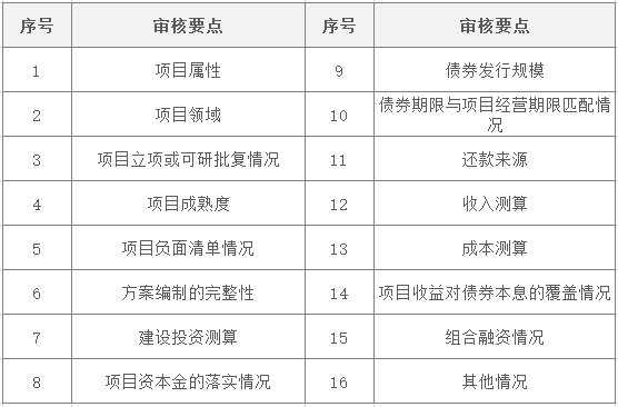 各省財政廳對發行文件進行審核,著重對《可研報告》與《實施方案》進行審核,審核要點如下:各省財政廳對項目的審批程序進行審核,項目達到開工條件后正式發行,審批程序審核事項清單如下:
