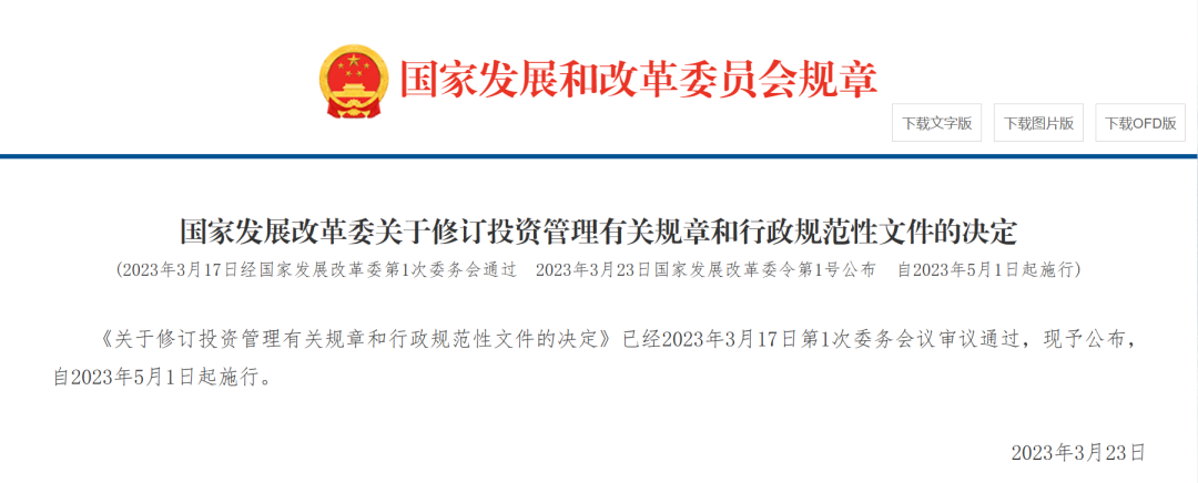 《關于修訂投資管理有關規章和行政規范性文件的決定》已經2023年3月17日第1次委務會議審議通過,現予公布,自2023年5月1日起施行。