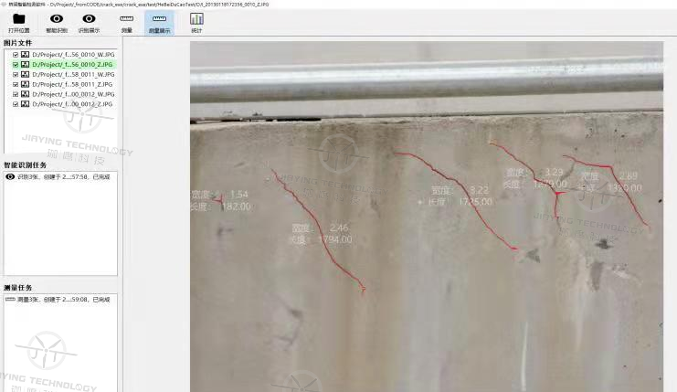 對于斜拉索橋,其受力模式較為復(fù)雜,多個關(guān)鍵部位均有可能產(chǎn)生受力裂縫或其他病害。珈鷹利用自主研發(fā)的智能識別測量軟件對已采集的高清圖像進(jìn)行智能、高效處理,精準(zhǔn)定位受損位置,捕捉病害。
