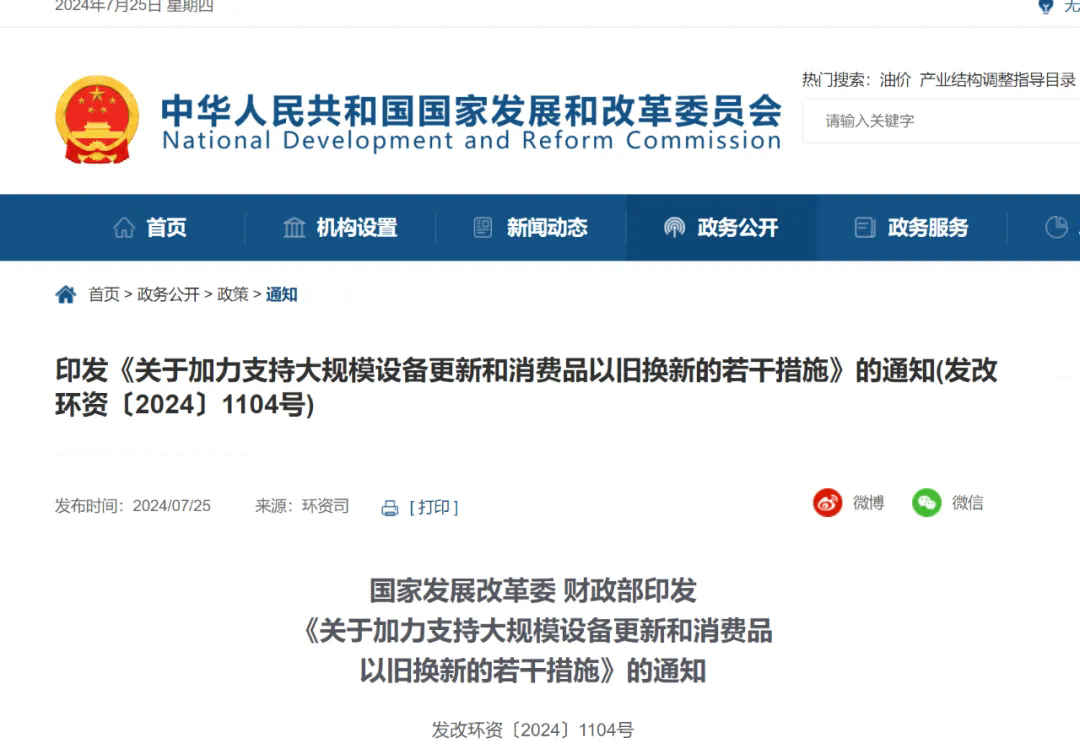 為全面貫徹黨的二十大和二十屆二中、三中全會精神,認(rèn)真落實黨中央、國務(wù)院決策部署,根據(jù)《推動大規(guī)模設(shè)備更新和消費品以舊換新行動方案》(國發(fā)〔2024〕7號),現(xiàn)就統(tǒng)籌安排3000億元左右超長期特別國債資金,加力支持大規(guī)模設(shè)備更新和消費品以舊換新,提出如下措施。