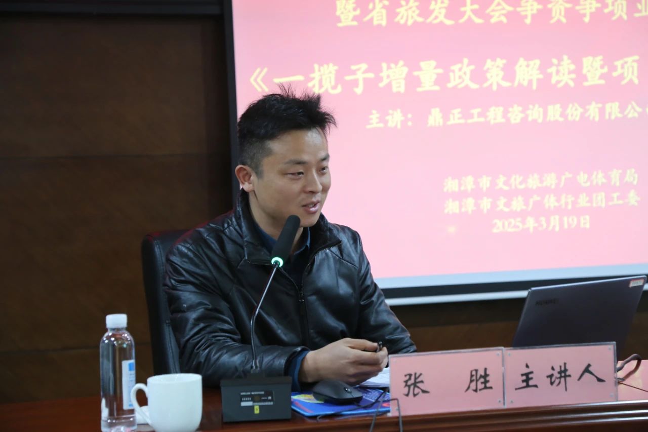 為搶抓增量政策窗口期,提升地方政府項目謀劃儲備質量和項目謀劃水平,精準擴大有效投資。3月19日,鼎正湖南分公司前期咨詢部總經理張勝應湘潭市文旅廣體局之邀,為湘潭市文旅系統開展《一攬子增量政策解讀暨項目謀劃申報》的專題培訓。