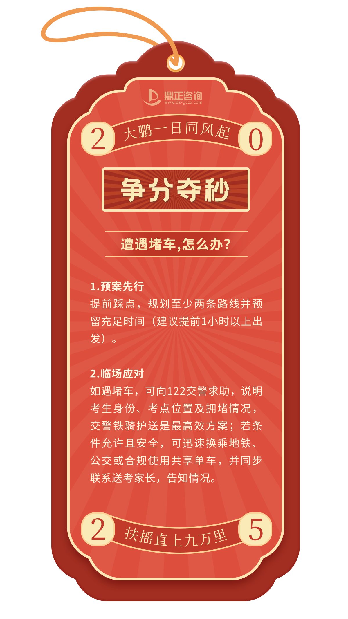 一年一度的高考即將拉開帷幕,全國(guó)1335萬學(xué)子,即將統(tǒng)一奔赴人生的重要考場(chǎng),十年寒窗磨一劍,只為能夠在這一次迎接光明的未來!決戰(zhàn)時(shí)刻,除了扎實(shí)的知識(shí),從容應(yīng)對(duì)考場(chǎng)內(nèi)外的“小意外”同樣關(guān)鍵。今天,鼎正人特別為莘莘學(xué)子準(zhǔn)備了這份「高考應(yīng)急錦囊」,匯集常見突發(fā)狀況的實(shí)用應(yīng)對(duì)策略,助大家穩(wěn)住心態(tài),全力發(fā)揮,讓每一滴汗水都不負(fù)期待!