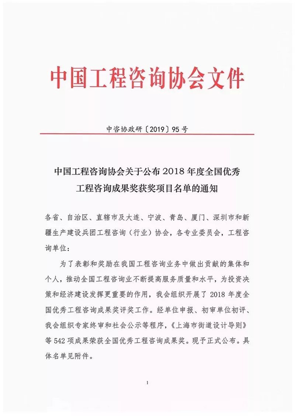 “全國優秀工程咨詢成果獎”自1996年經國家發改委批準正式設立,后經國務院監察部確認保留,并由中國工程咨詢協會每兩年組織評選一次的工程咨詢行業的全國性獎項,旨在表彰和獎勵在我國工程咨詢業務實踐中做出突出貢獻的集體和個人,獲獎項目被認為是代表我國工程咨詢界最高水平的項目,其工程咨詢成果具有創新性和推廣應用前景,能夠積極地推動全國工程咨詢業服務質量和水平的不斷提高,促進投資決策科學、規范地實施,更好地為我國經濟建設發展提供專業的咨詢服務。