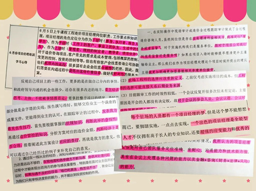通過學習,同事們增強了項目管理意識及系統性的思維能力,更進一步明確了職業定位和工作職責,學習完成后還結合自身實際工作情況記錄學習心得并學以致用。