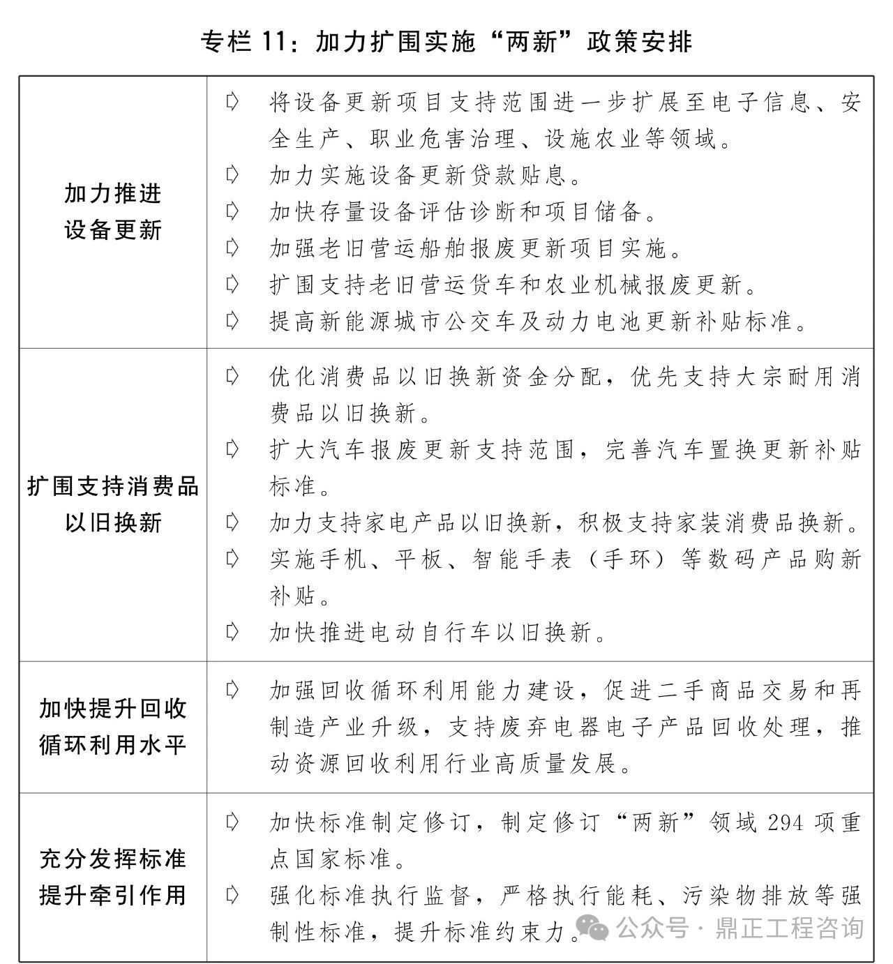 安排超長期特別國債5000億元支持大規模設備更新和消費品以舊換新,統籌投資、財政、金融等綜合性政策,深入推進設備更新、消費品以舊換新、回收循環利用、標準提升四大行動。進一步加大重點領域設備更新項目支持力度,加力實施設備更新貸款貼息,加快存量設備評估診斷和項目儲備。進一步支持消費品以舊換新,擴大汽車報廢更新支持范圍,完善汽車置換更新補貼標準,實施手機、平板等數碼產品購新補貼,積極支持家裝消費品換新,簡化補貼申領和支付流程,完善資金監管機制,嚴厲打擊價格欺詐和違規騙補套補行為。