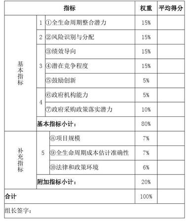 第九條 開展物有所值評(píng)價(jià)時(shí),項(xiàng)目本級(jí)財(cái)政部門(或PPP中心)應(yīng)會(huì)同行業(yè)主管部門,明確是否開展定量評(píng)價(jià),并明確定性評(píng)價(jià)程序、指標(biāo)及其權(quán)重、評(píng)分標(biāo)準(zhǔn)等基本要求。